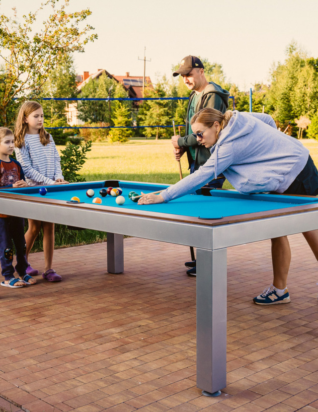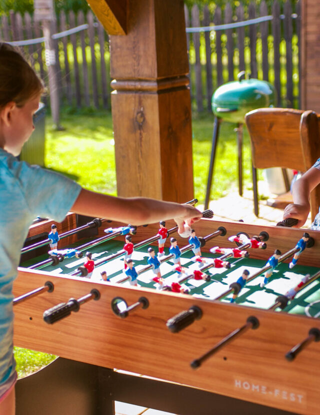 Zewnętrzne stoły do gier zachęcają do rodzinnych aktywności. W naszym ogrodzie czeka na Was stół do bilarda, stół do ping ponga, a także piłkarzyki. Kto dziś wygra zmagania?