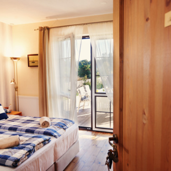 noclegi w komfortowych pokojach, apartamentach lub prywatnych domkach - w zależności od wykupionego typu (długość pobytu min. 1 nocleg),