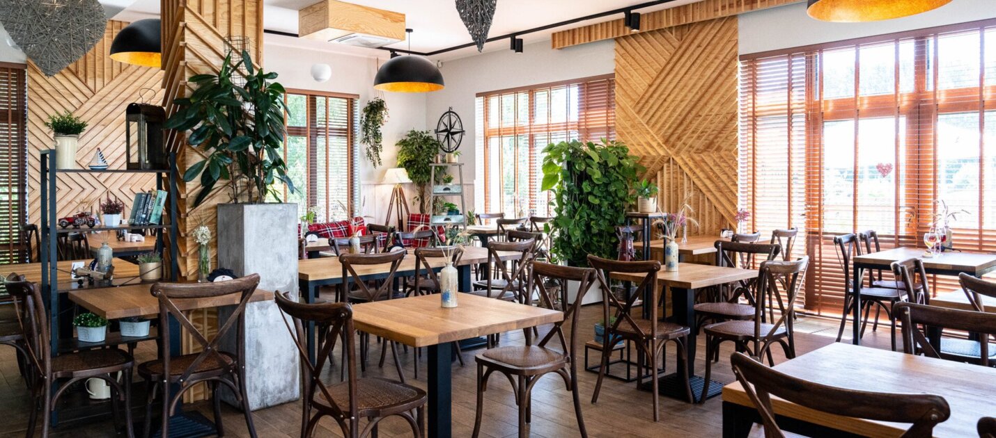 Restauracja Qchnia Dwa Jeziora mieści się w czwartej willi na terenie resortu - Ostoja.