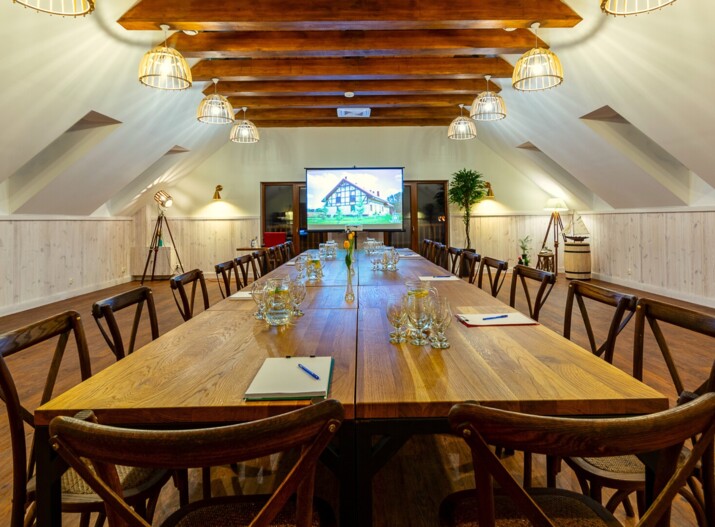 W naszym resorcie nie zapomnieliśmy także o biznesie. Ostoja Dwa Jeziora dysponuje 7 salami konferencyjnymi, zarówno na większe szkolenia do 80 osób, jak i do zajęć w mniejszych grupach. Sale w pełni wyposażone są w sprzęt szkoleniowy (rzutniki, ekrany, itd.). W przerwie pomiędzy zajęciami i spotkaniami zapraszamy na przepyszną przerwę kawową z domowymi wypiekami w sali restauracyjnej, na tarasie czy też w ogrodzie.